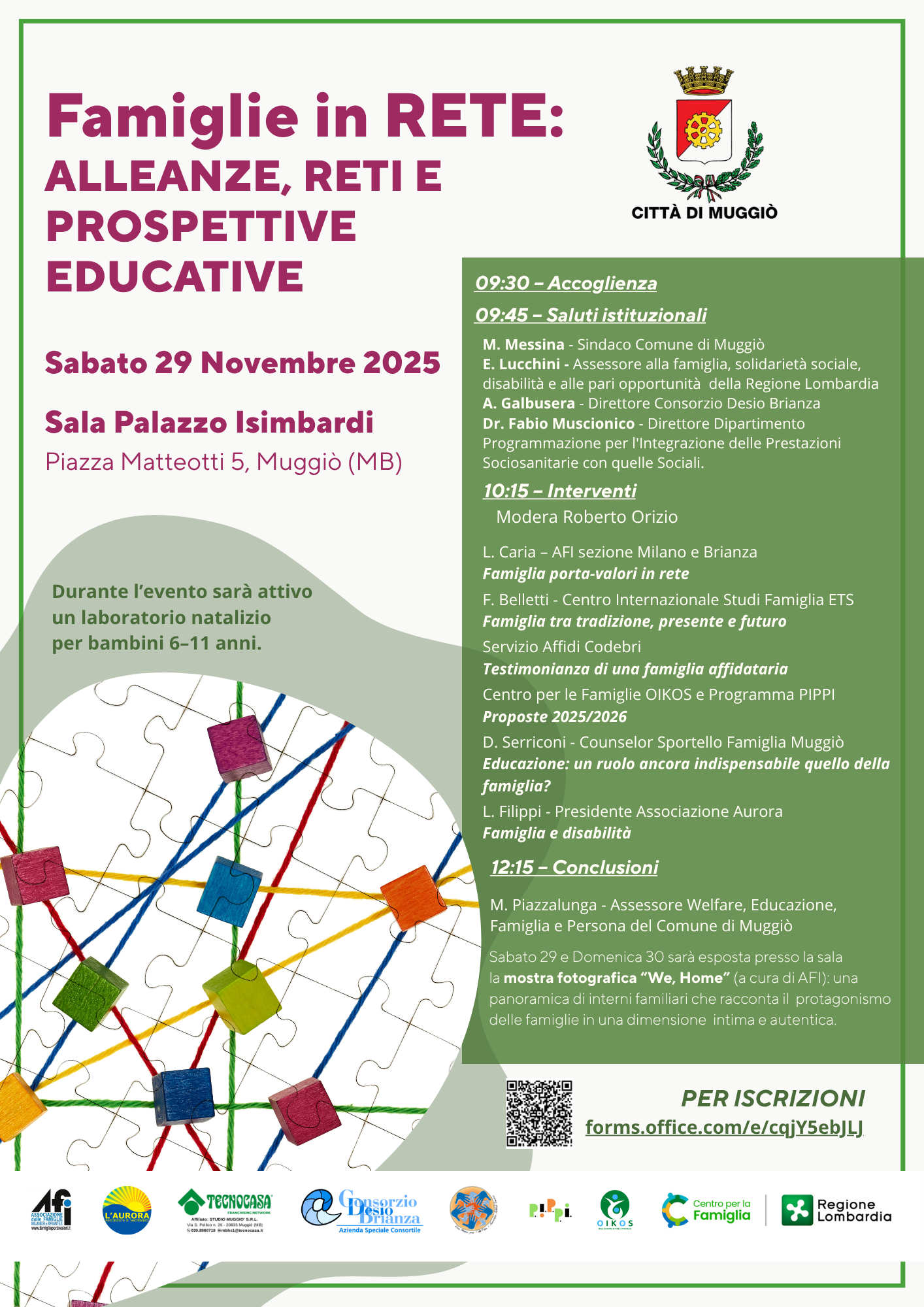 Alleanze, reti e prospettive educative, sabato 29 novembre 2025 Sala Palazzo Isimbardi, Piazza Matteotti 5, Muggiò.