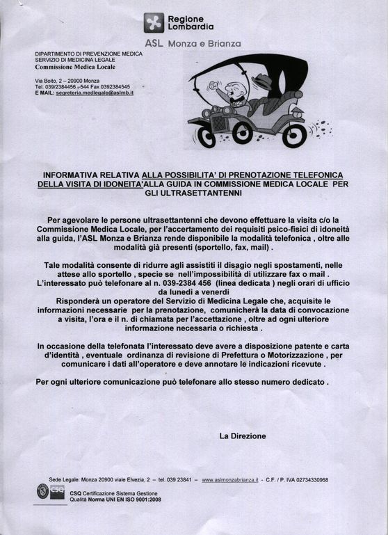 Visita per idoneità alla guida ultrasettantenni - Comune di Varedo (MB)